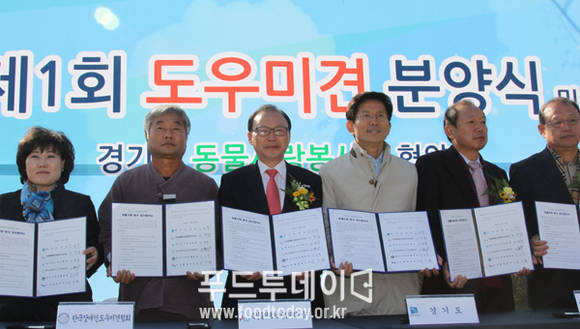 이번 업무협약에는 조규담 원장, 김문수 경기도지사 등 각 기관‧단체장이 참석했으며 경기도 내 장애인 및 독거노인 등을 대상으로 총 9마리의 도우미견을 분양하는 '제1회 도우미견 분양식'과 함께 진행됐다.