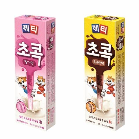 '제티초콕'은 빨대 속에 알갱이가 가득 들어가 있는 스트로형 제품으로, 우유에 빨대를 꽂기만 하면 흰우유를 초코 맛, 딸기 맛 우유로 간편하게 즐길 수 있는 제품이다.