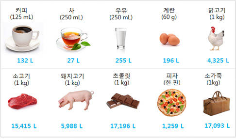 커피와 피자, 소고기 등 모든 제품의 원료에서부터 제조, 유통, 폐기까지에 소요되는 물의 양을 표시하는 KS국가표준 '물발자국'이 제정됐다.