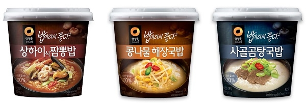 특히 ‘상하이식짬뽕밥’과 ‘콩나물해장국밥’, ‘사골곰탕국밥’이 해장용으로 인기가 높다.‘상하이식짬뽕밥’은 다양한 해물과 청양고추가 어우러진 얼큰한 맛이 해장용 아침식사로 인기다. 라면과 즉석밥의 장점을 하나로 모아 진한 국물에 튀기지 않은 국산 쌀로 든든하고 소화가 잘 되 더욱 건강하게 즐길 수 있다. ‘콩나물해장국밥’은 콩나물과 북어의 시원한 맛과 함께 풍부한 아미노산 성분과 단백질이 간의 회복 기능을 높이고, 해독 작용을 해 숙취해소에 도움이 된다. ‘사골곰탕국밥’은 정성스럽게 우려낸 진한 사골국물에 마늘 농축 진액을 넣어 깊은 맛을 내기 때문에 헛헛한 속을 달래는데 좋다.