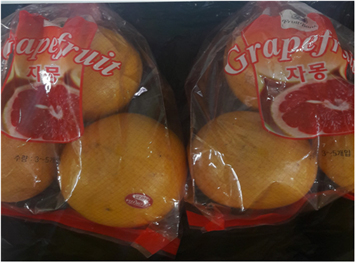 또한 회수 대상 중 일부 제품은 소분과정에서 표시가 잘못된 것으로 확인됐으며 수입원이 엘에스네트웍스이고 판매원이 푸룻뱅크(서울 송파구 소재)로 표시된 미국산 ‘자몽’도 회수대상이다.