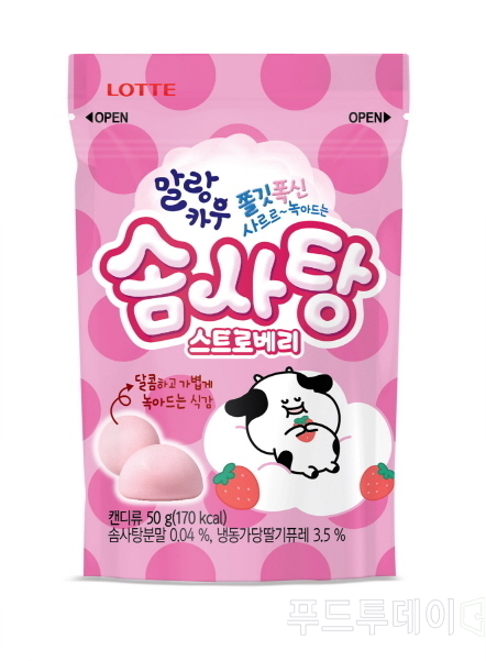 롯데제과(대표 민명기)는 인기 소프트 캔디 ‘말랑카우’의 신제품 ‘말랑카우 솜사탕 스트로베리’를 선보였다.