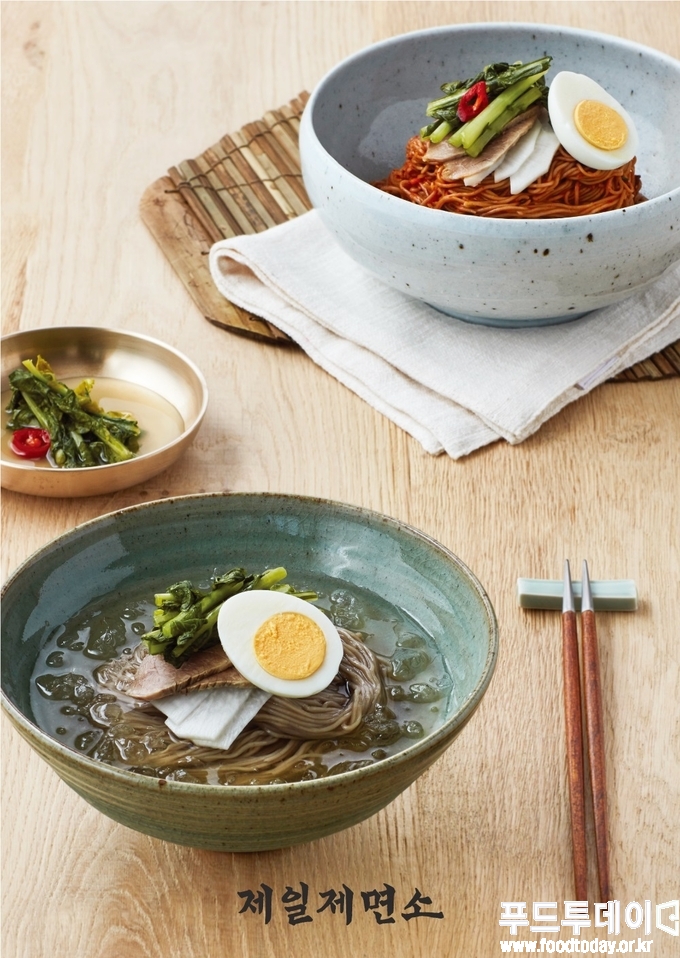 이번에 출시한 제일냉면은 ‘제일 물냉면’과 ‘제일 비빔냉면’ 2종으로, 쫄깃한 메밀생면에 고소한 양지 수육과 아삭한 열무김치를 고명으로 올렸다. ‘제일 물냉면’은 양지를 푹 고아 낸 육수에 새콤달콤한 동치미로 맛을 더했다.