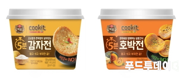 CJ제일제당은 최근 간편식 트렌드에 맞춰 별도 재료 준비 없이 쉽고 빠르게 전 요리를 즐길 수 있는 즉석전 신제품 2종 ‘백설 쿠킷 감자전’과 ‘백설 쿠킷 호박전’을 출시했다.