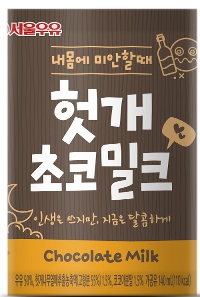 서울우유협동조합(조합장 송용헌)이 헛개나무 열매 추출물 25,000mg을 함유한 숙취해소 초코우유 ‘헛개초코밀크’를 출시했다.