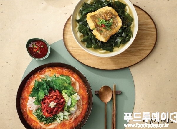 ‘가자미구이 미역국수’는 완도산 미역을 사용한 영양만점 미역국에 쫄깃한 칼국수 면을 넣어 든든하게 구성했다. 여기에 노릇노릇하게 구운 가자미를 올려 특별함을 더했다. ‘한우육회 물회국수’는 아삭한 배와 풍성한 채소, 한우 육회를 푸짐하게 담은 물회에 소면을 말아 시원하게 즐기는 별미다.