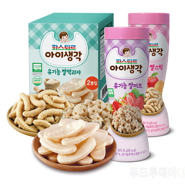 [푸드투데이 = 조성윤기자] 롯데푸드(대표 이영호) 파스퇴르는 유아용 유기농 쌀 과자 3종(유기농 쌀떡과자, 유기농 쌀퍼프, 유기농 쌀스틱)을 출시한다. 지난 7월 베이비푸드 브랜드 ‘아이생각’을 론칭한 후 이유식, 유아용 음료에 이어 이번에 과자까지 제품 라인을 확대한 것.