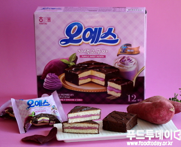 [푸드투데이 = 조성윤기자] 해태제과(대표 신정훈)가 오예스에 자색 고구마 맛을 입힌 ‘오예스 자색 고구마’를 출시했다.