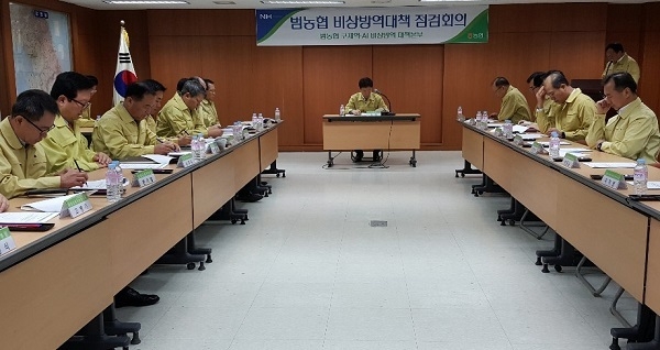 [푸드투데이 = 황인선기자] 농협중앙회(김병원 회장)는 3일 허식 부회장을 비롯 임원 및 집행간부, 주요 부서장 등 30여명이 참석한 가운데 구제역, AI 등 가축전염병 예방을 위한 '범농협 비상방역 점검회의'를 개최했다.