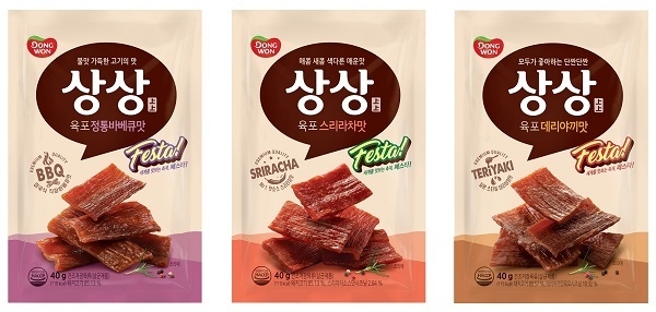 [푸드투데이 = 황인선기자] 동원F&B(대표 김재옥)가 세계 각국의 특색 있는 맛을 담은 육포, ‘상상육포 페스타’ 3종(정통바베큐맛, 스리라차맛, 데리야끼맛)을 출시했다.