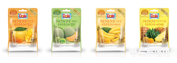 [푸드투데이 = 조성윤기자] 돌(Dole)코리아가 최근 2030세대를 중심으로 젤리에 대한 인기가 날로 높아짐에 따라 쫄깃한 젤리 속에 상큼 달콤한 과즙을 가득 담은 ‘돌 푸루푸루구미’ 4종을 출시했다.