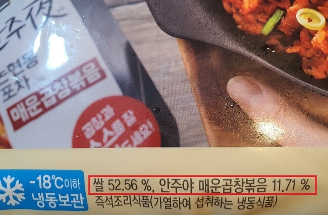 매운곱창볶음밥 : 쌀 52.56%, 안주야 매운곱창볶음 11.71%