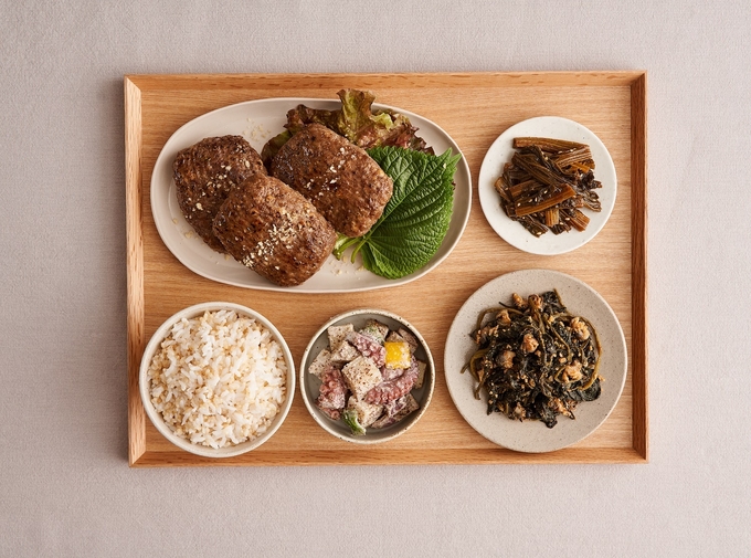 더반찬&이 이번에 선보인 ‘일호식’ RMR은 △두부, 소고기, 돼지고기 등을 넣고 두툼하게 다져 만든 수제 떡갈비와 각종 채소로 구성한 ‘두툼떡갈비와 쌈야채’ △자숙 문어와 삶은 감자로 만든 스페인식 샐러드에 들깨를 넣어 고소함을 더한 ‘문어감자 들깨샐러드’ △풍미 좋은 국내산 곤드레 나물에 고소한 우렁강된장을 넣어 감칠맛이 있는 ‘우렁강된장 곤드레무침’ △새콤하고 아삭아삭한 갓장아찌를 들기름으로 버무려 더욱 고소한 ‘들기름 갓장아찌’ 등 4종과 이를 모아 한상차림으로 구성한 ‘일호식 2인 소반세트’까지 총 5종이다.