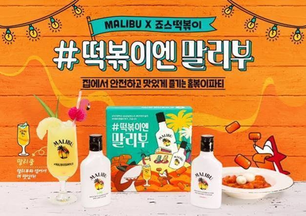 상품 포장박스에는 떡볶이와 함께할 때 시너지가 배가 되는 ‘말리쿨’ 칵테일 황금비율 레시피가 적혀 있어, 코코넛 럼 말리부를 처음 접하는 이들도 쉽게 맛있는 칵테일을 만들 수 있도록 했다. 어떤 음료와 믹스하든 부드럽게 잘 어우러지며 달달한 맛을 선사하는 말리부는 매운 음식과 즐길 때 더욱 빛을 발한다. 특히 떡볶이의 단짝인 쿨피스 등의 유산균 음료와 말리부를 3:1의 비율로 섞은 ‘말리쿨’ 칵테일을 떡볶이와 함께 먹으면 매운 맛을 중화해주는 기분 좋은 달콤함을 경험할 수 있다.