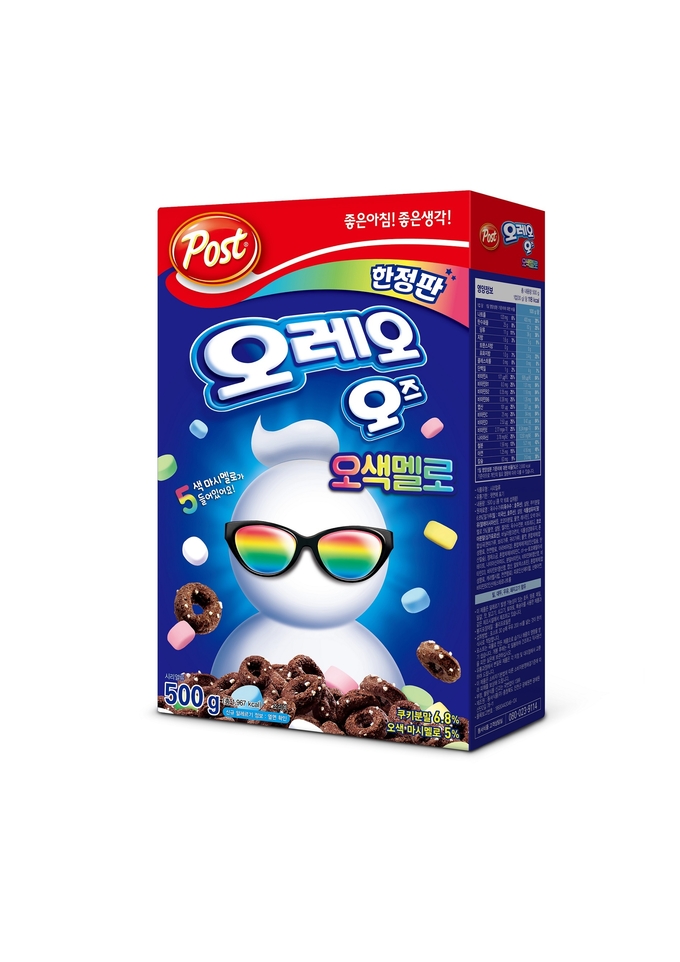 [푸드투데이 = 조성윤기자] 동서식품(대표 이광복)은 다섯가지 색의 마시멜로를 넣은 신제품 시리얼 '포스트 오레오 오즈 오색멜로'를 한정 판매한다. 이번 신제품은 달콤하고 바삭한 초코맛 시리얼 ‘오즈링’에 다섯가지 색의 마시멜로를 더한 제품이다. 기존의 하얀 마시멜로와 함께 비트레드, 심황, 스피룰리나 등 천연 색소를 입힌 빨강, 노랑, 파랑, 초록색 마시멜로를 담아 보는 재미까지 더했다.