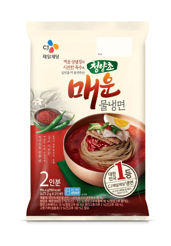 이 제품은 스테디셀러 ‘CJ 동치미 물냉면’의 면과 육수에 청양초 양념장을 함께 넣어 취향에 맞게 매운맛을 조절할 수 있다. 양념장은 전문 셰프의 노하우를 토대로 청양초를 활용, 유명 맛집의 비법소스 맛을 그대로 살렸다. 반만 넣으면 매콤하고, 모두 넣으면 화끈한 매운 맛을 즐길 수 있다.