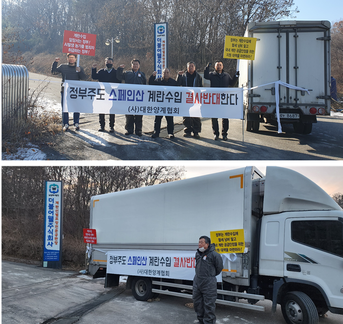 양계협회는 지난 6일 농림축산식품부 세종청사 앞에서 ‘정부주도 계란수입 저지를 위한 기자회견’을 가진데 이어 10일 계란이 도착하는 식용란선별포장업체를 방문해 저지운동을 벌였다. 이 자리에는 오세을 산란계비상대책위원장을 비롯 정기훈 양계협회 감사 등이 참석하였으며, 계란이 입고되는 저녁에는 차량으로 정문앞을 막고 저지운동을 벌이기도 했다.