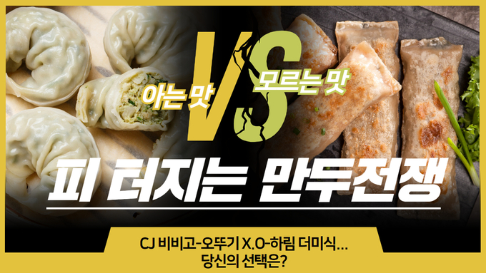 CJ제일제당의 '비비고 왕교자'는 1번, 하림산업 'The 미식 육즙고기교자' 2번, 오뚜기의 'X.O 교자 고기'는 3번입니다.