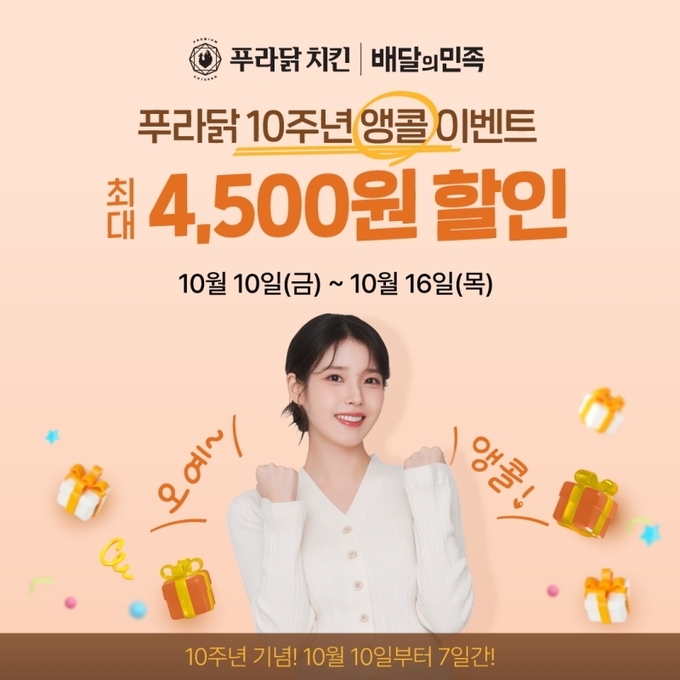 오븐-후라이드 전문 브랜드 푸라닭치킨(대표 장성식)은 10일부터 16일까지 일주일간 배달의민족을 통한 ‘앵콜 프로모션’을 진행한다.