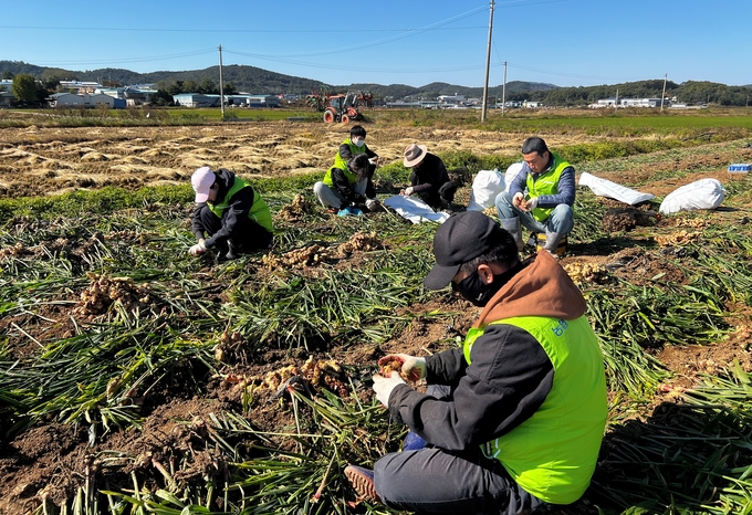이날 봉사활동에 참여한 축산유통부 직원 10여명은 출하를 앞둔 생강 농가를 위해 수확부터 선별, 운반 등 농작업을 진행했으며, 농가 주변 배수로의 퇴적토와 잡초제거 등 환경개선에도 힘을 보탰다.