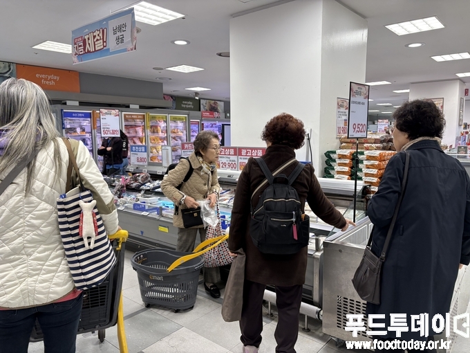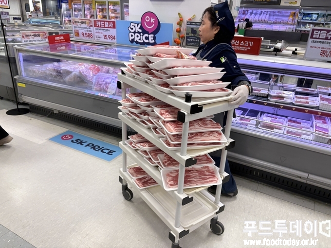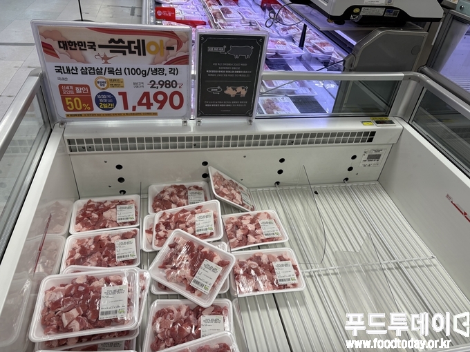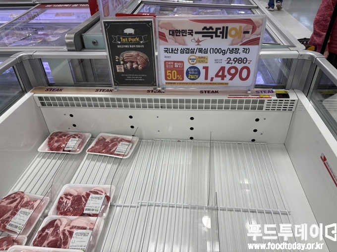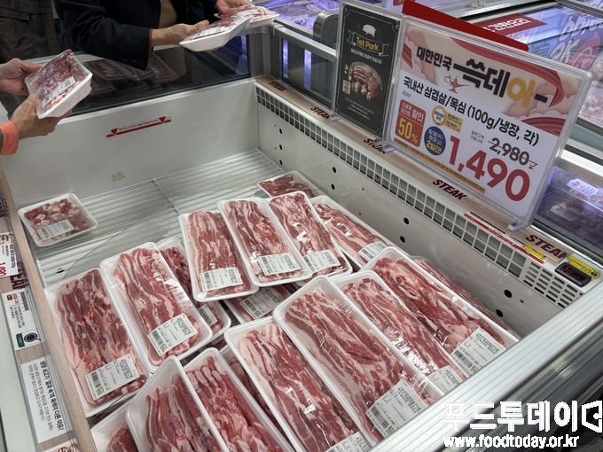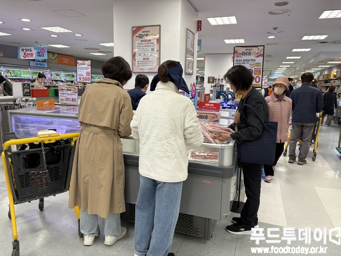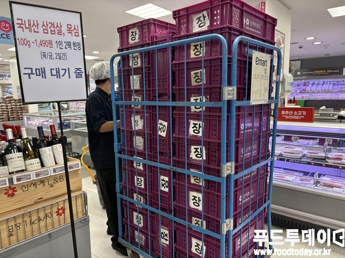 서울시 강남구 소재 이마트 수서점은 오전 11시였지만 삼겹살과 목살 코너에 소비자들이 길게 구매행렬을 이었다.