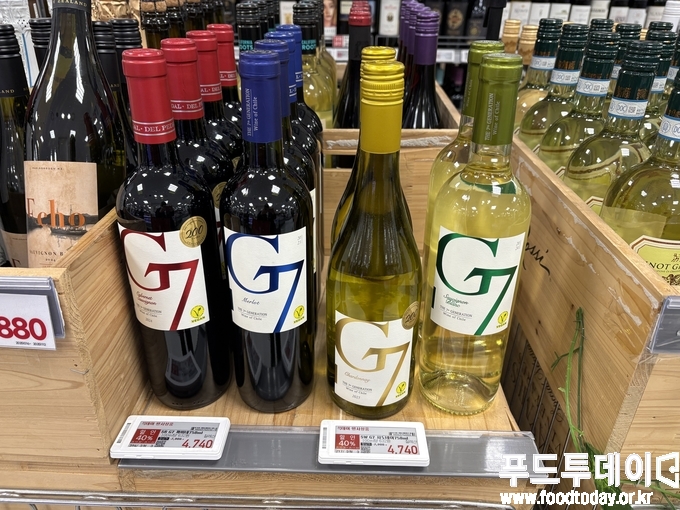 ‘와인 클리어런스’도 펼쳐진다. 신세계포인트 적립시 와인 행사상품을 최대 40% 할인하며, 이마트의 대표적인 와인 G7과 도스코파스도 40% 할인된 4740원에 판매중이었다.