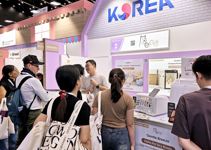 농식품부와 aT는 국내 우수기업 25개 사가 참여하는 한국관을 구성해 반려동물 사료, 덴탈껌, 동결건조 간식, 반려동물 세정제, 침대, 드라이룸, 관절염 관리기기, 미용기기 등 용품, 유전자 검사서비스, 영양제 등 헬스케어 제품을 소개했다.