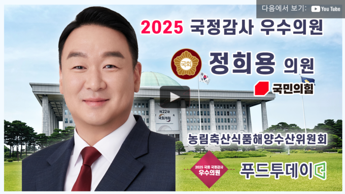 [푸드투데이 = 황인선.노태영 기자] 푸드투데이(대표 황창연)는 창간 이후 23년간 대한민국 먹거리와 식량안보를 책임지는 농림축산식품해양수산위원회(농해수위)와 보건복지위원회(복지위)를 중심으로 해마다 ‘국정감사 우수의원’을 선정해왔다.