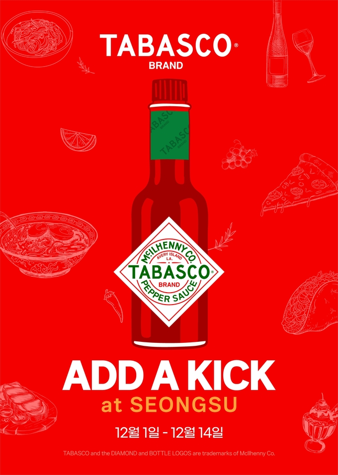 또한 성수 로컬 매거진 채널 ‘성수교과서’를 운영하는 인플루언서 ‘제레박’과의 협업을 통해 지역 상권 활성화에 기여하고, 소비자들이 일상 속에서 쉽게 시도해 볼 수 있는 다양한 타바스코® 소스 활용법을 소개할 예정이다.