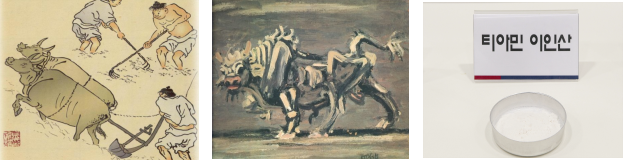 우리 민족과 함께한 숨결, 소의 시작 전시에서는 농경사회에서 노동의 동반자이자 제물, 이야기 속 주인공으로 등장하는 소의 모습을 소개하고, 고구려 벽화 속 수레를 끄는 소, 신라시대 제천 기록, 견우·직녀 설화 등을 통해 오래전부터 우리의 삶 가까이 존재했던 소의 발자취를 보여준다.