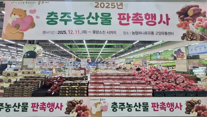 [푸드투데이 = 황인선기자] 농협경제지주(농업경제대표이사 박서홍)는 지난 11일부터 7일간 농협하나로마트 고양점에서 2025년 충주 농산물 특판행사를 실시한다고 12일 밝혔다.