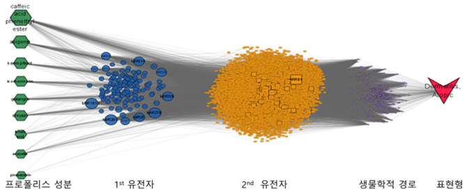 서울과학기술대학교, 연세대학교, 가천대학교, 분당차병원과 함께 빅데이터 기반 분석, 세포실험, 동물실험, 인체적용시험, 면역기전 분석까지 단계별로 프로폴리스의 면역조절 효과를 진행한 농진청은 프로폴리스 성분과 아토피성 피부염과의 연관성을 빅데이터로 분석했고, 그 결과 프로폴리스에서 확인된 12종의 주요 성분이 면역 과민 반응(아토피성 피부염)과 관련된 203개 생물학적 과정에 관여한 것으로 나타났다.