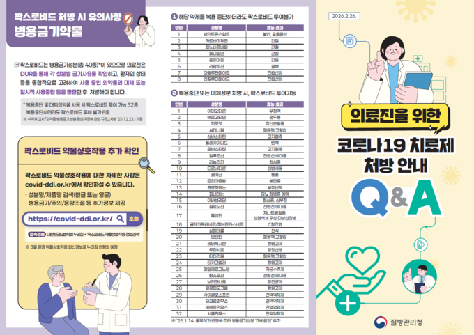이에 질병청은 병용금기약물 복용자의 팍스로비드 사용 확대를 위해 품목허가에 기반하여 병용금기약물 세부안내를 질병청 누리집 홍보자료에서 팜플랫을 통해 배포할 예정이며, 심평원과 협조하여 병용금기약물 복용자 팍스로비드 처방 시 유의사항을 의약단체를 통해 의료기관에 안내하고, 팍스로비드 투약량 관리를 쉽게 할 수 있도록 의료진 대상 안내를 강화할 예정이다.