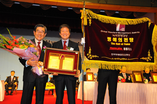 홈플러스(회장 이승한)는 30일 홍은동 그랜드힐튼호텔에서 한국능률협회인증원 주최로 열린 ‘2012 글로벌스탠더드 경영대상’ 시상식에서 업계 최초로 5년 연속 ‘녹색경영대상’을 수상하면서 ‘녹색경영대상 명예의 전당’에 헌정됐다고 밝혔다.