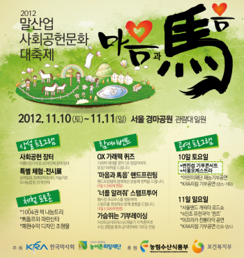 우리 사회 나눔과 기부문화를 한 자리에서 만날 수 있는 ‘2012 사회공헌문화대축제'가 오는 10~11일 서울경마공원에서 열린다.