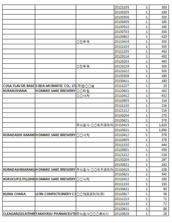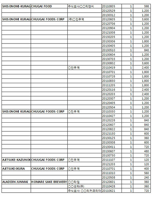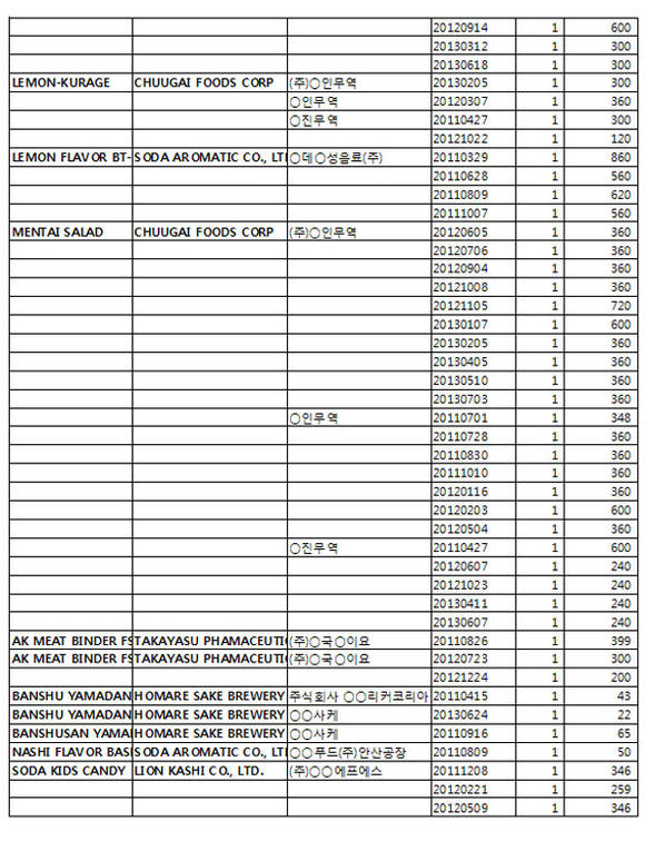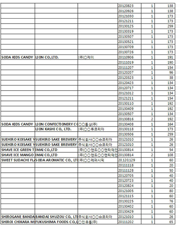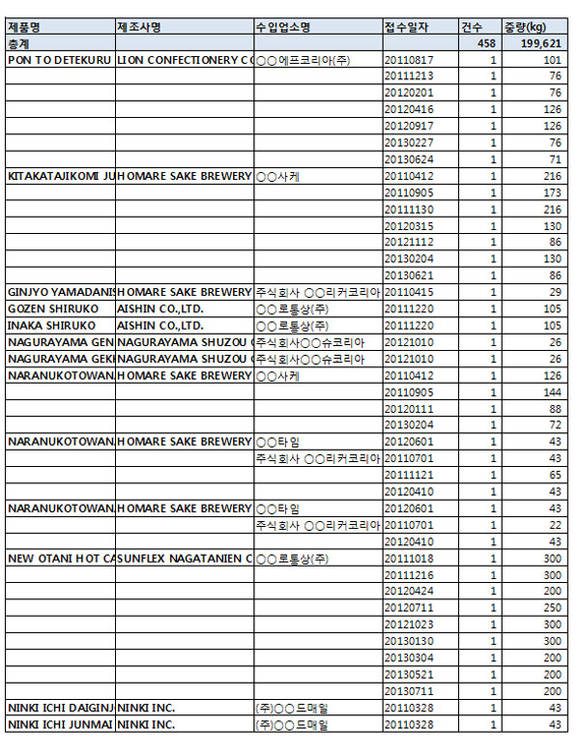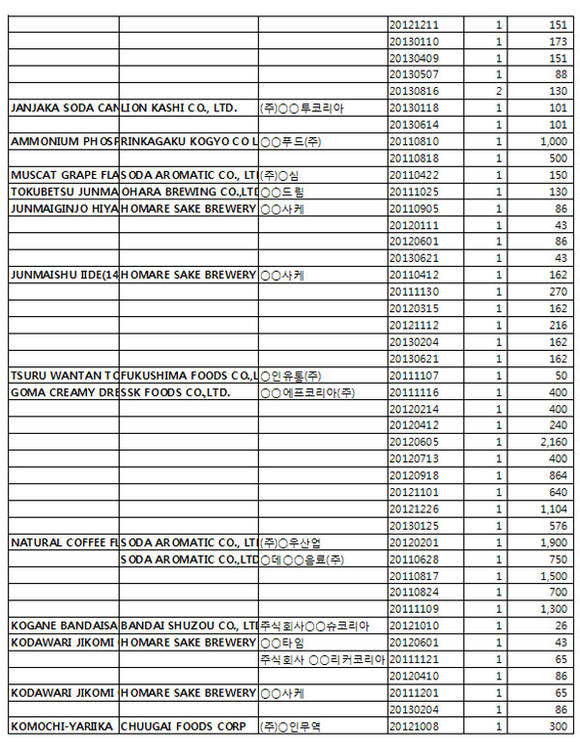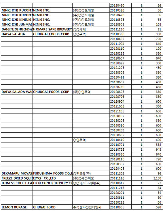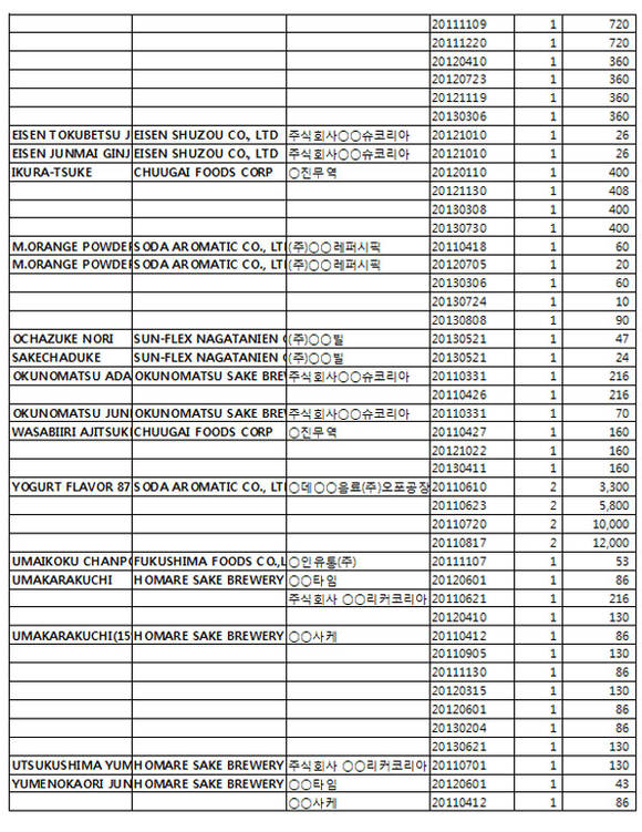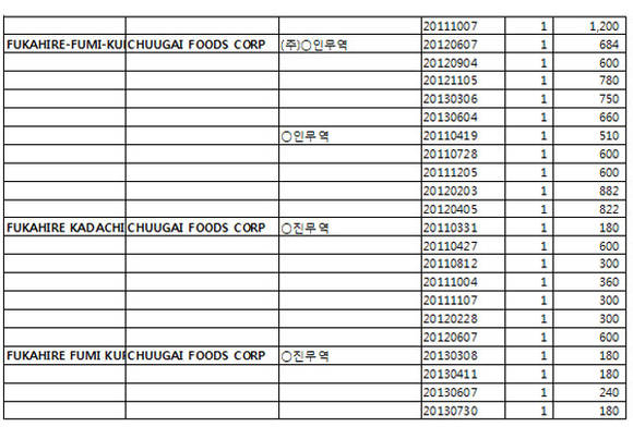 <일본 후쿠시마産 20만kg 수입 상세내역>