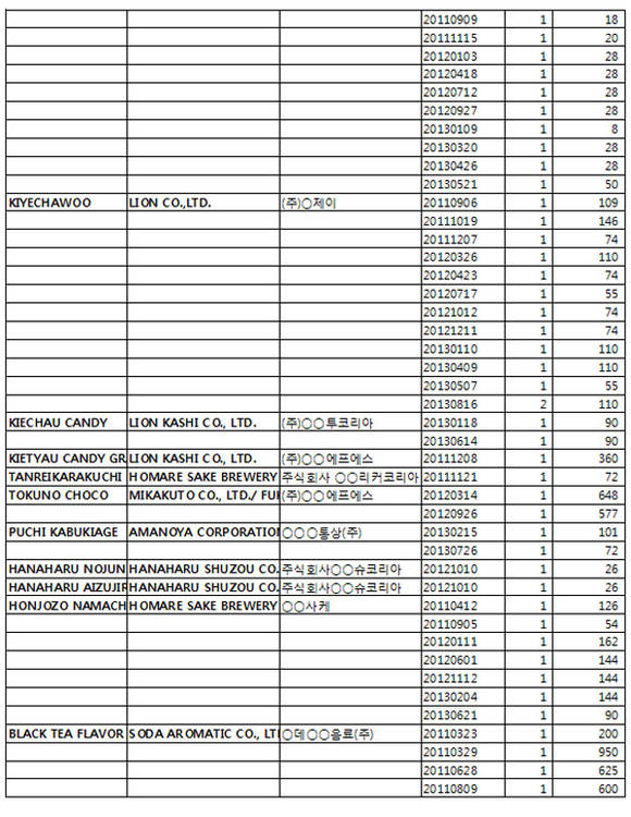 또한, 일본산 가공식품의 수입추이를 구체적으로 살펴보면 2010년 4만3,598톤에서 2011년 4만293톤으로 소폭 감소하였다가 2012년 4만6,586톤으로 증가하였으며, 금년 들어 9월말현재 5만822톤으로 증가추세를 지속하고 있는 것으로 집계되었다.