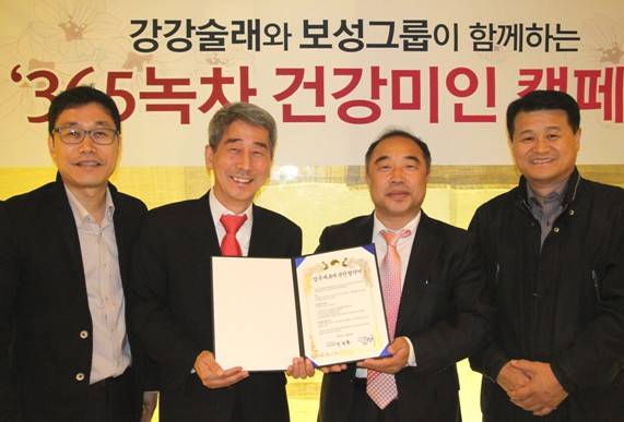 김상국 강강술래 사장은 “녹차는 타임지 선정 ‘세계 10대 건강식품’에 선정될 만큼 정신건강과 몸에 좋은 식품”이라며 “이번 캠페인이 커피에 밀려 위축된 녹차 산업의 활성화와 소비 확대에 도움이 되었으면 한다”고 말했다.