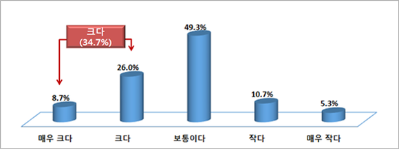 할랄시장의 성장가능성에 대해서는 ‘보통이다’(49.3%), 크다 34.7%(크다 26.0% + 매우 크다 8.7%), 작다 16.0%(작다 10.7% + 매우 작다 5.3%) 순서로 높게 나타났다.
