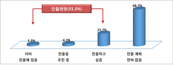 조사 결과, 식품제조 중소기업은 61%가 할랄시장에 대해 알고 있는 것으로 조사됐고 진출의향에 대해서는 3명 중 1명꼴인 31.3%가 할랄시장에 이미 진출해 있거나 진출을 희망하는 것으로 나타났다.