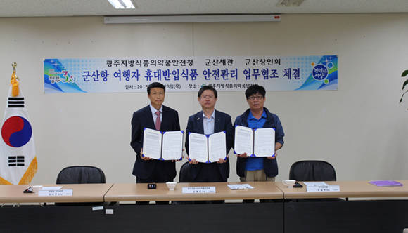 식품의약품안전처(처장 김승희) 광주식약청은 관세청(군산세관)과 함께 군산항으로 반입되는 여행자 휴대반입물품 중 유해식품의 근절을 위해'여행자 휴대반입식품 상표명 사전신고제'를 오는 8월부터 시행한다고 23일 밝혔다.