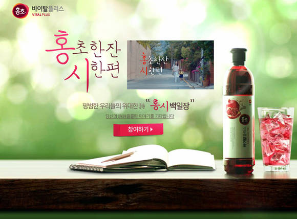 청정원 ‘홍초한잔 시한편’ 시리즈는 ‘수박’ 편, ‘찌찌뽕’ 편 등 일상에서 느끼는 주부들의 마음을 짧은 시로 표현해, 주부들의 일상에 활력을 선사하는 홍초 바이탈플러스의 제품 컨셉을 반영했다.