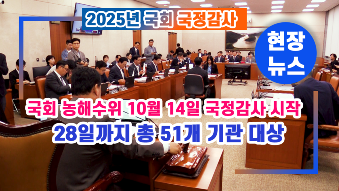 오는 10월 14일 첫 국감은 농림축산식품부를 비롯해 축산물품질평가원, 가축위생방역지원본부, 농업정책보험금융원, 농림식품기술기획평가원, 농림수산식품교육문화정보원, 축산환경관리원을 대상으로 진행된다.