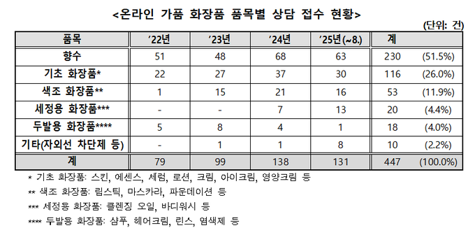 3년간 상담 447건…“향수·기초화장품 피해 많아”