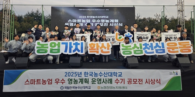 이번 공모전에서는 대상 1편, 최우수상 2편, 우수상 3편 등 총 11편이 입상했으며, 수상자에게는 한농대 총장상 및 농협창업농지원센터장 명의의 상장과 시상금이 수여됐다.
