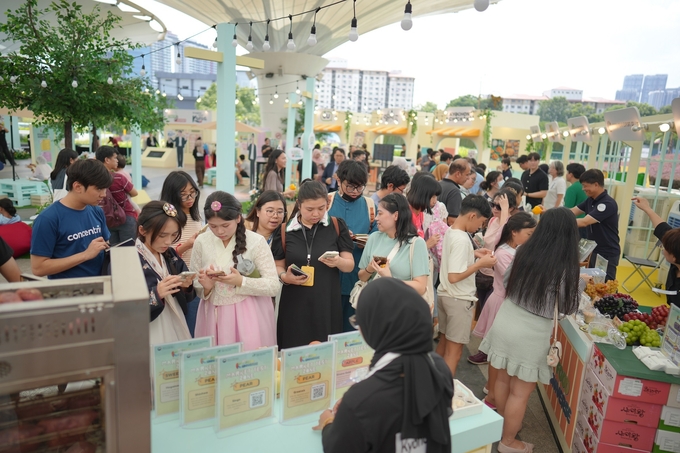 이번 팝업스토어는 판매존(포도‧배), 마켓테스트존(배, 포도, 사과, 고구마), 통합조직존(포도‧배‧파프리카‧딸기‧귤‧키위), F&B존(교촌, 설빙, CU), 포토존, K-관광존, 이벤트존 등 구성된 다양한 부스를 운영해, 판매, 시식, 전시를 한 번에 체험할 수 있는 K-신선 농산물 축제의 장으로 기획했다고 aT는 설명했다.