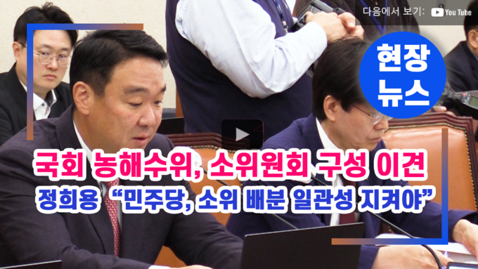 이에 대해 정희용 의원은 “유감의 뜻을 남긴다”며 “관례적으로 농해수위는 농림축산식품법안소위와 청원소위, 해양수산법안소위와 예결산소위가 한 쌍으로 운영돼 왔는데, 지난 회기에서 민주당이 야당일 당시 ‘정부와의 소통이 어렵다’는 이유로 두 소위를 모두 맡았다”고 지적했다.