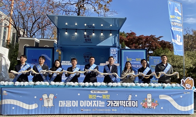 [푸드투데이 = 황인선기자] 농협(회장 강호동) 경제지주(농업경제대표이사 박서홍)는 11일 여의도공원에서 가래떡데이를 맞아 농림축산식품부, 농림수산식품교육문화정보원과 함께 '쫄깃쫄깃 마음이 이어지는 가래떡데이' 행사를 실시했다.