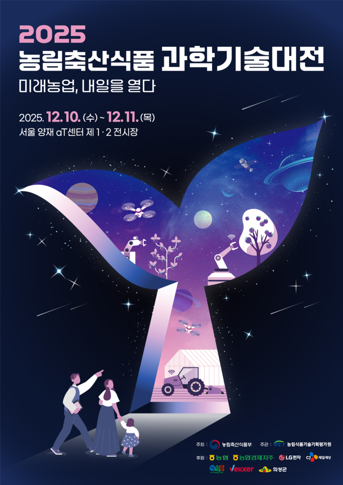 [푸드투데이 = 노태영기자] 농림축산식품부(장관 송미령, 이하 농식품부)는 10일부터 11일까지 서울 양재동 aT센터에서 2025 농림축산식품 과학기술대전(이하 과학기술대전)을 개최한다고 밝혔다.