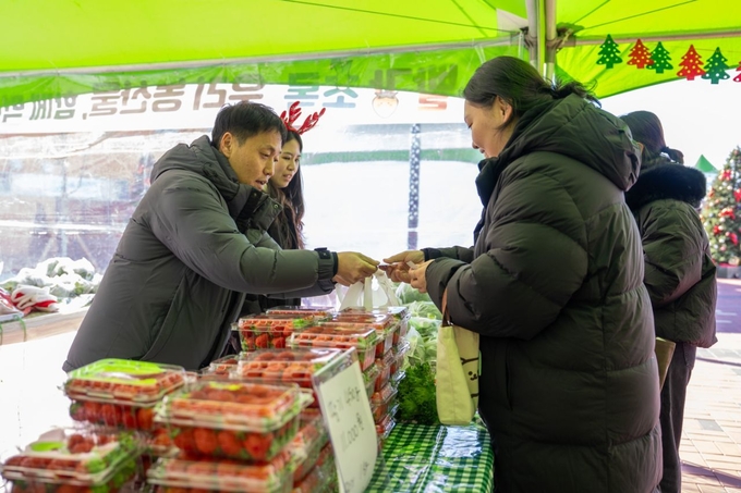 [푸드투데이 = 노태영기자] 25일 충북 증평군(군수 이재영)이 크리스마스를 맞아 34플러스센터 광장에서 겨울철 농산물을 중심으로 한 체험형 프로그램과 직거래 판매를 결합해 지역 농업의 가치를 알리고, 크리스마스를 맞아 가족 단위 방문객이 참여할 수 있는 로컬 행사 삼삼한 빨강 초록 마켓을 열었다고 밝혔다.